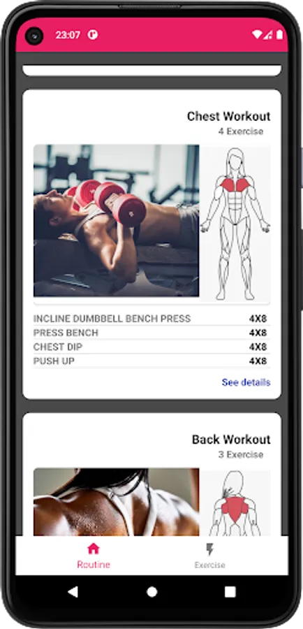 This gym workout routine app is the ideal tool for those looking to achieve their fitness goals. With a wide variety of personalized exercises and detailed progress tracking, our app ensures an effective and motivating workout. And with daily reminders, you won't have to worry about forgetting your workouts or missing a beat.