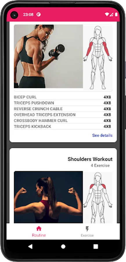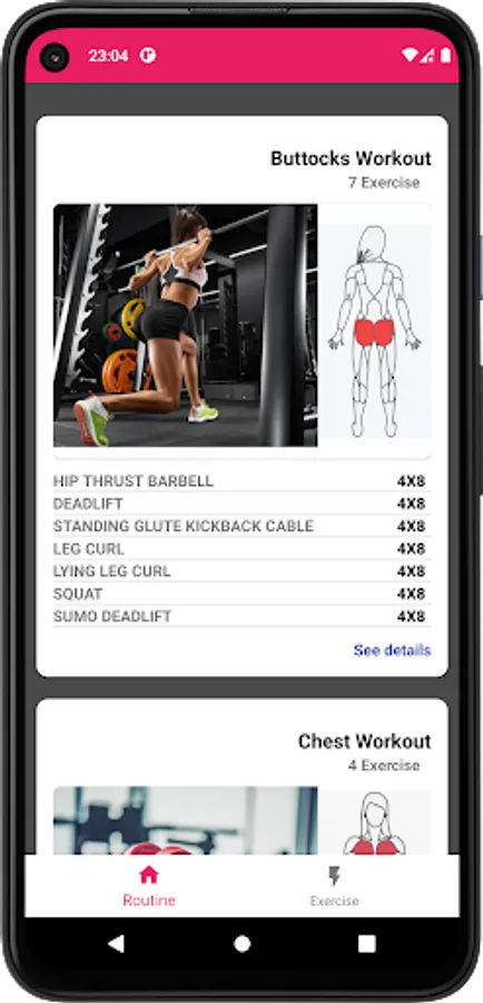 Our gym workout routine app gives you an organized and effective routine so you can work out without feeling overwhelmed. With our wide variety of personalized exercises, you can choose the ones that best fit your goals and fitness level, and follow a structured and well-balanced training plan.