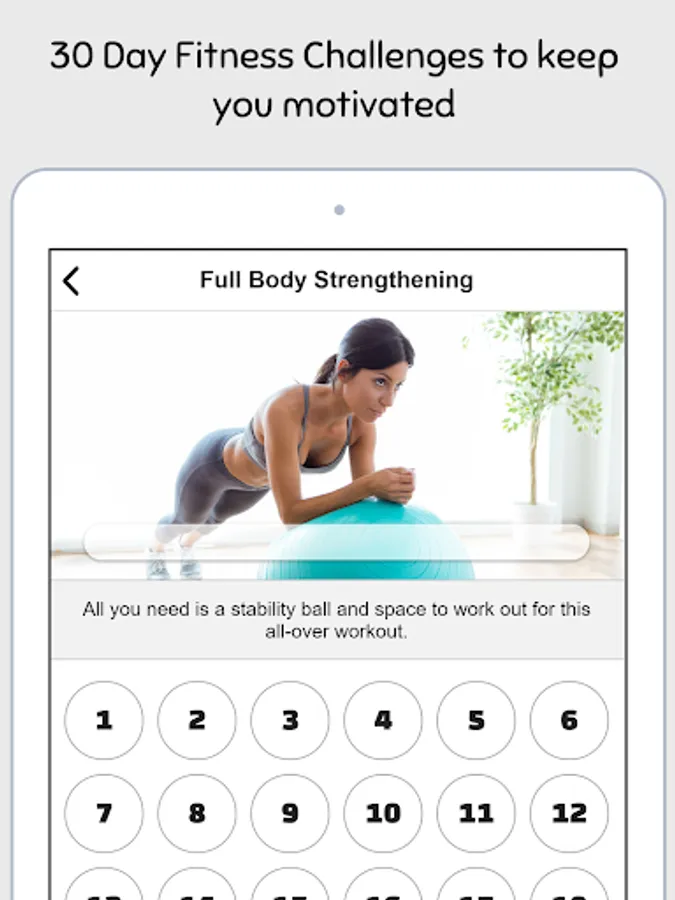 The exercises in this app help work on all areas of your body while allowing you to get familiar with the unstable surface of the ball. This is perfect as a beginner if you haven't had much experience using an exercise ball and want a gentle way to work your body.