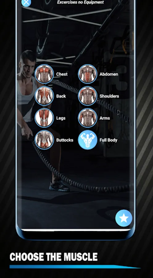Training by muscle group (Fitness app has exercises for abdominals, chest, legs, shoulders, biceps, buttocks and exercises for the whole body)