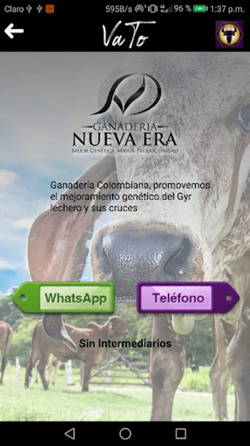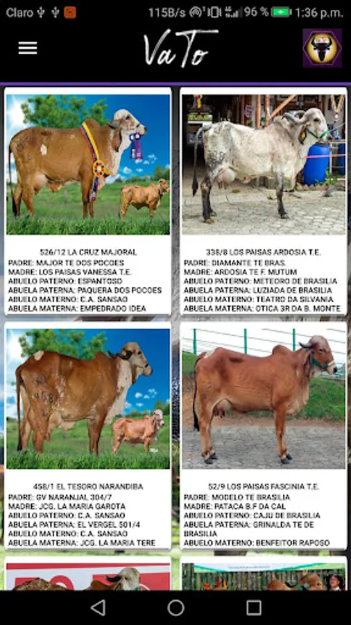 VaTo is an Application that automates and facilitates interaction and contact between farmers, allows the main specimens of each farm to be clearly and globally displayed, allows direct contact between buyer and owner, sometimes dispensing with the intervention of a third party (Consignee), avoiding on costs for the payment of commissions in intermediation.