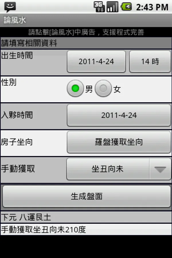 On the feng shui (Calc129) is a calculation software feng shui fortune. An azimuth display Flying Star.