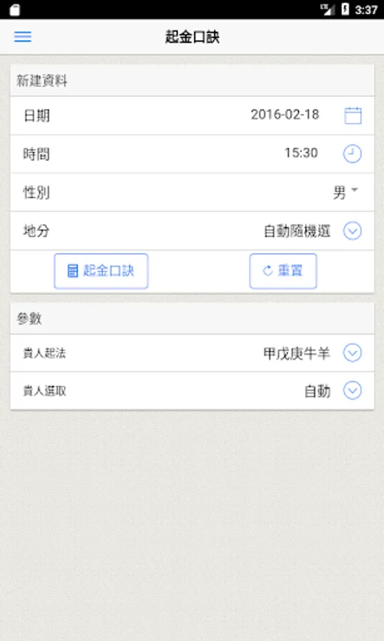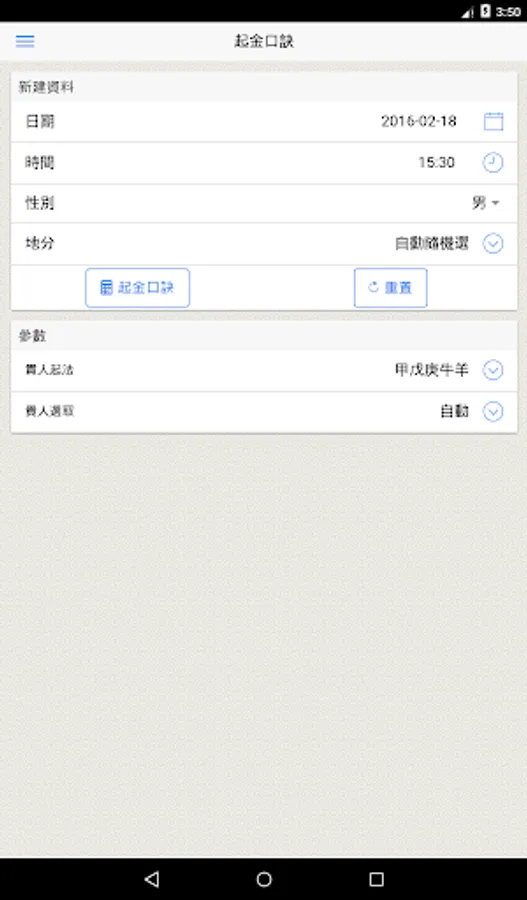 1. Enter the basic information such as time, date of birth, and place of the land. The parameters can also be selected according to the actual habits.