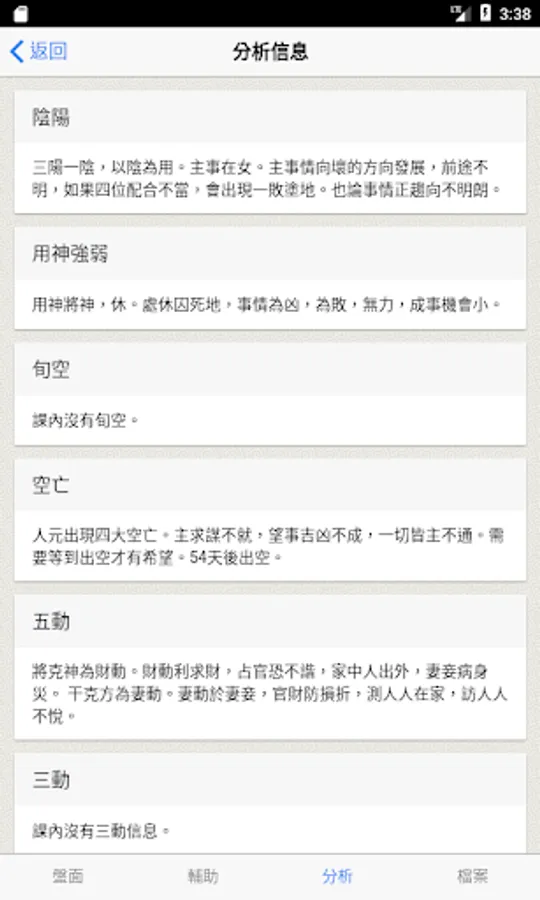 3. According to the results of the disk, provide a brief analysis of yin and yang, ten days, emptiness, five movements/three movements, and so on.