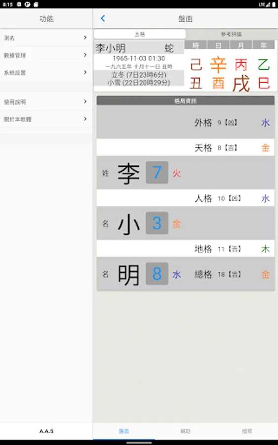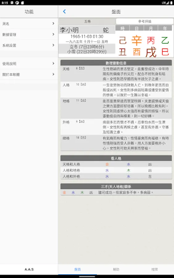 CalcName is a metaphysical fortune-telling software that analyzes names based on the Five Elements.
