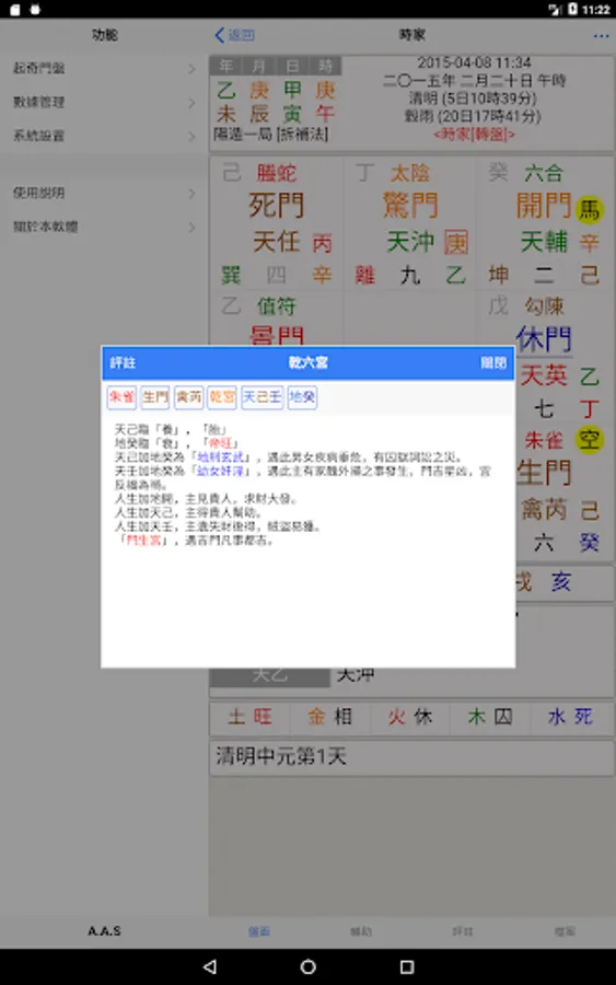 3. According to the results of the disk, the Qimen Yuding analysis corresponding to the turntable's engraved family/shijia/yuejia/nianjia, and Rijia Qimen also provides corresponding analysis.