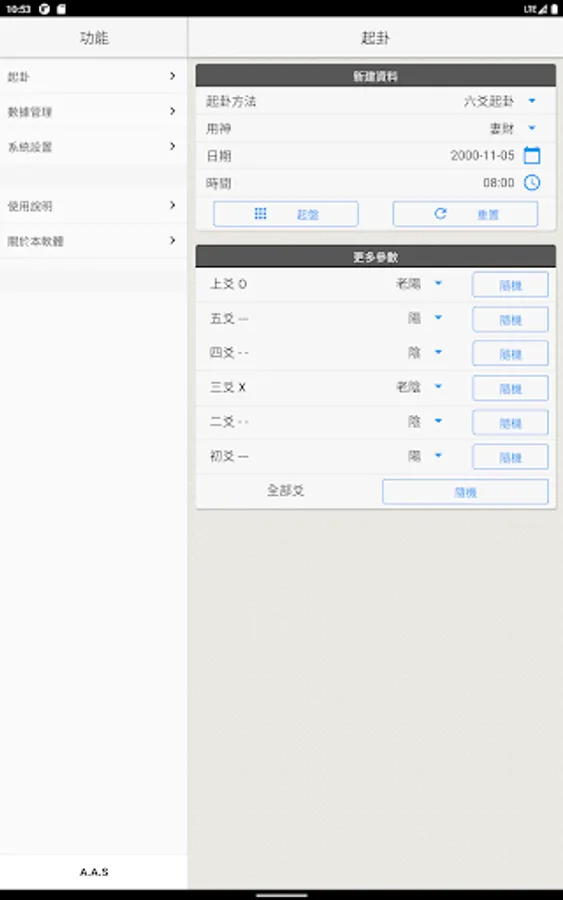 1. Support time, a variety of digital hexagrams, six lines, self-defined combinations, and analogy plus orientation and other hexagram methods.
