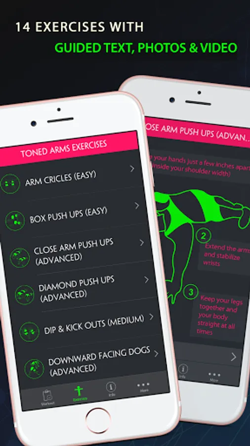 The 30 Day Arms Workout is a simple 30 day exercise plan, where you do a set number of ab exercises each day with rest days thrown in! The workout increases intensity slowly and day 30 will test anyone. The app is suitable for both men and women of any ages.