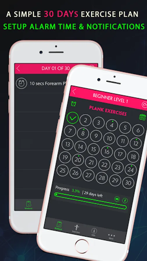 The 30 Day Plank Workout is a simple 30 day exercise plan, where you do a set number of ab exercises each day with rest days thrown in! The workout increases intensity slowly and day 30 will test anyone. The app is suitable for both men and women of any ages.