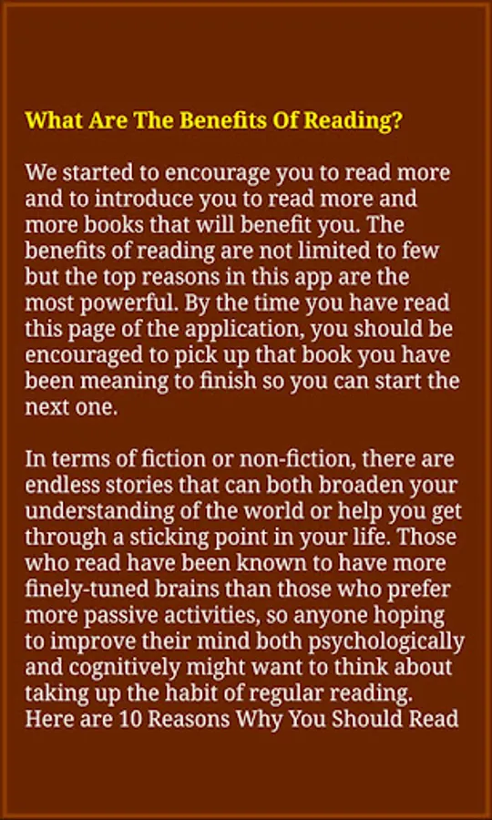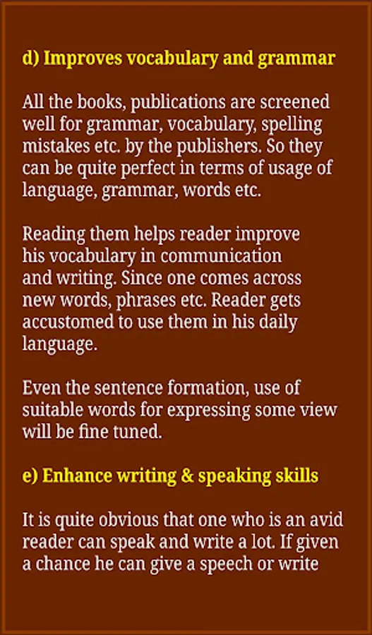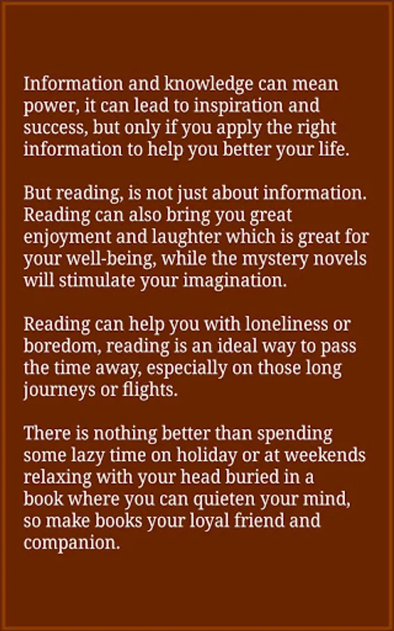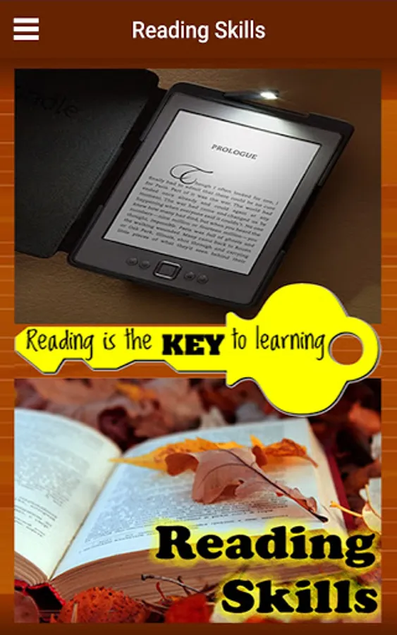 Reading is the basic foundation on which academic skills of individuals are built. As we know the paramount importance of reading, it is given the top priority in primary education. Reading is a great habit that can change human life significantly. It can entertain us, amuse us and enrich us with knowledge and experiences narrated. Improving your reading skills will reduce unnecessary reading time and enable you to read in a more focused and selective manner. You will also be able to increase your levels of understanding and concentration. Many believe that reading is a true measure of a person's success in academics. Most of the subjects taught to us are based on a simple concept – read, understand, analyze, synthesize, and get information. This app shows you how to read with greater efficiency and effectiveness by using a range of different reading skills.