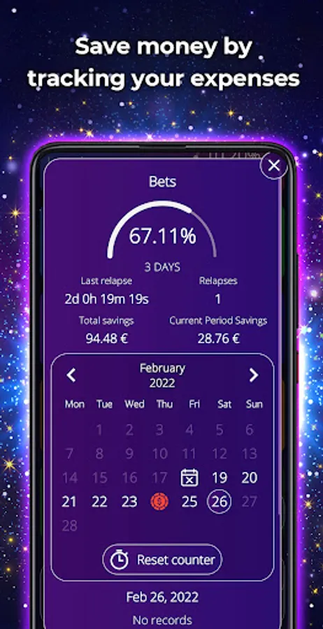 If you ever have a relapse, it is very easy to reset the counter. You only have to indicate how much time or money you have lost and it will be deducted from the total.