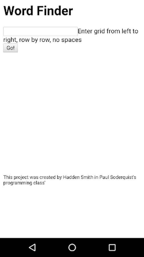 Have you ever played a game that requires users to find words by connecting characters in a grid? This app aims to help someone with that task. Simply type the characters as they appear row after row in the source grid and the app will reveal all words it finds using a dictionary of almost 60,000 English words. It also allows the user to display the path between characters of each word.