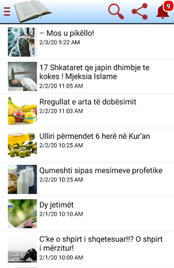 - Mundësi për të ndarë një hadith në rrjetet sociale