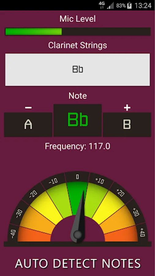 This free Clarinet tuner will analyze the sound of your Clarinet using the built-in mic of your device, display the current note played its frequency, and direct you to tune your Clarinet fast and accurately.