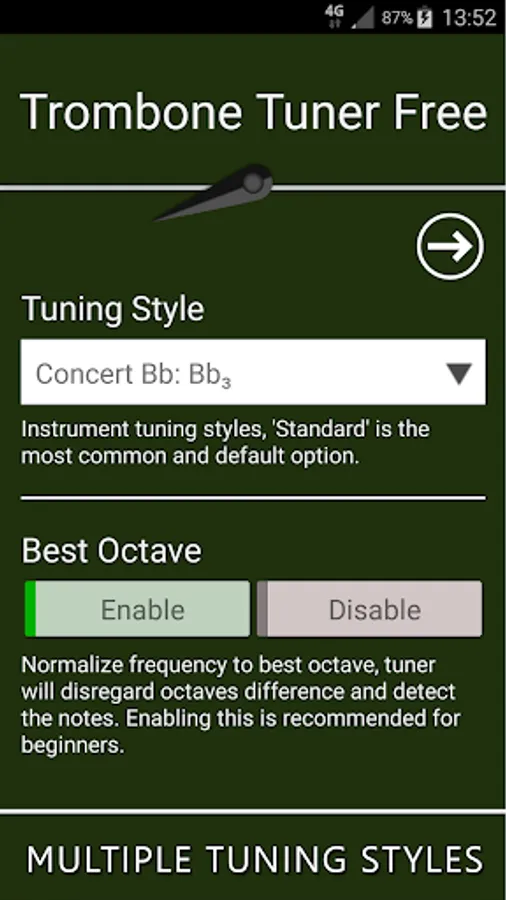 The easiest way to tune your Trombone - Trombone Tuner! Tune your Trombone with a simple, accurate, and hands-free Trombone tuner app.