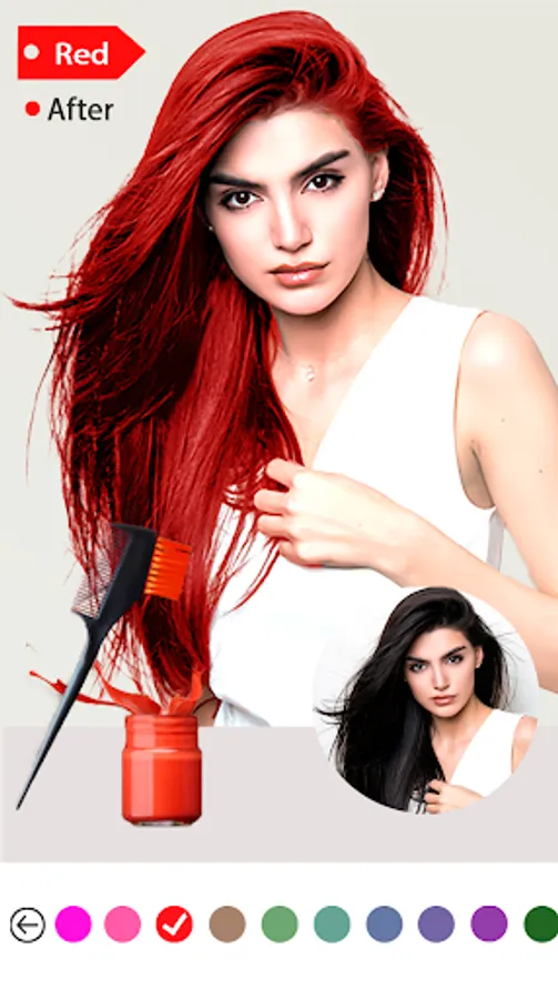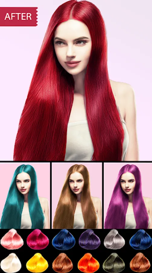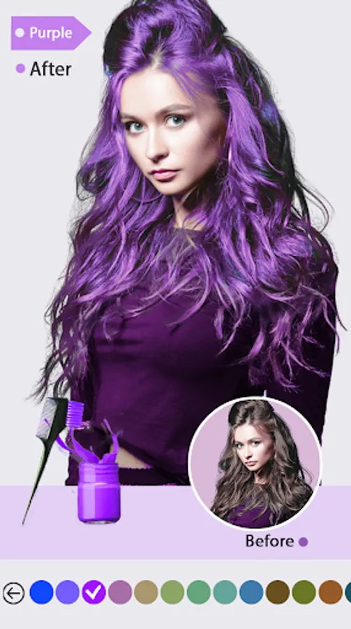 Do you want to change your hair color but don't know which color suits your hair? Bright purple or natural yellow? Or simply pretend to hair changer color to make your friends surprise. With Hair color changer - Try different hair colors, retouch hair is that simple.