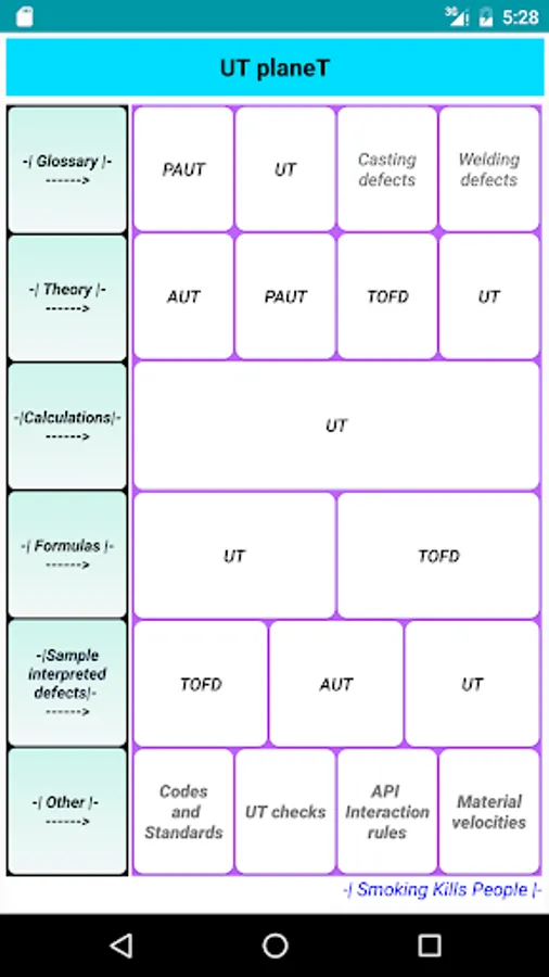 This application mainly divided into six major parts, which fulfill basic requirement of new UT technicians and advanced UT operators, as per industrial applications,