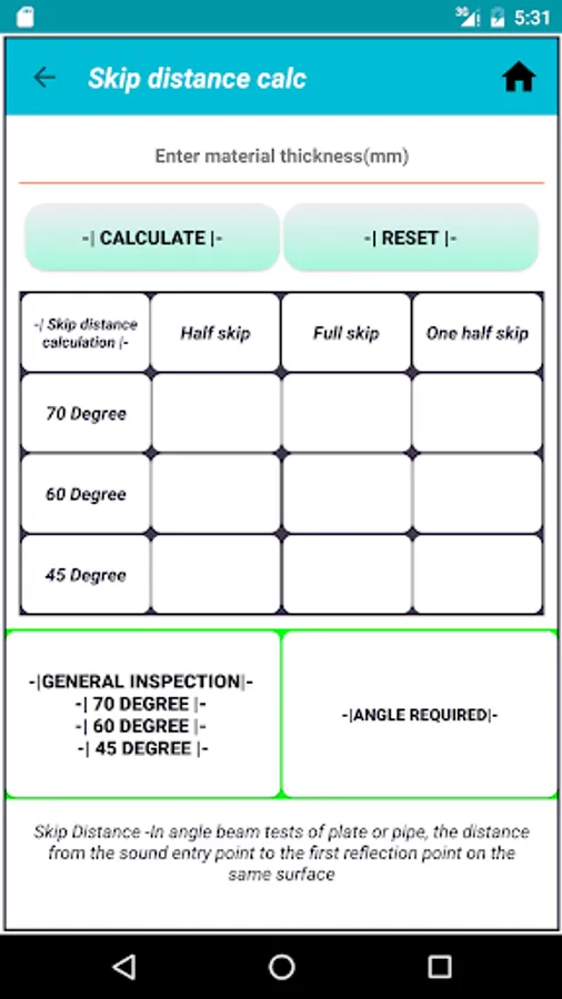3. Ultrasound calculations part covers, all the conventional UT calculations with very good user interface design, (basic explanation towards corresponding calculation),