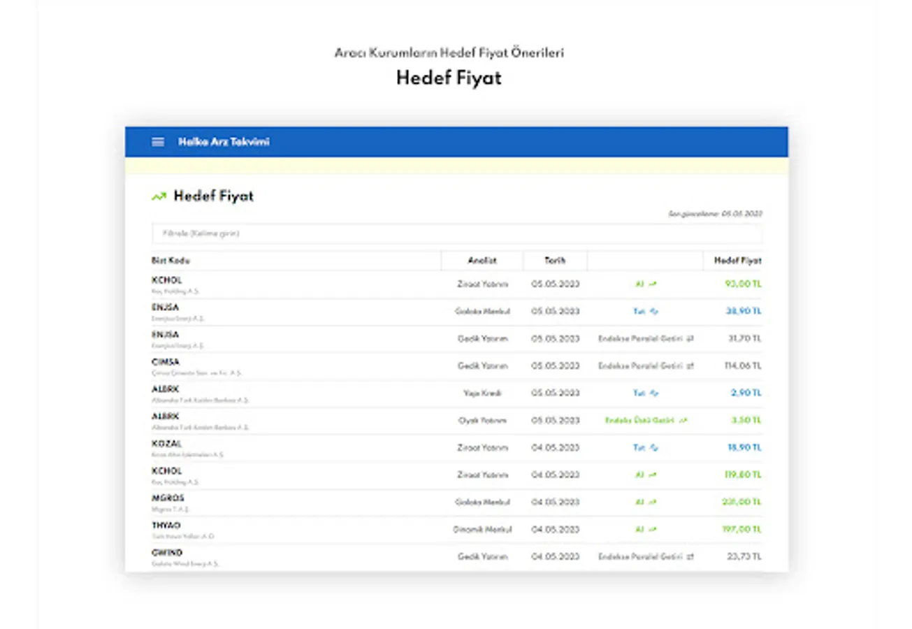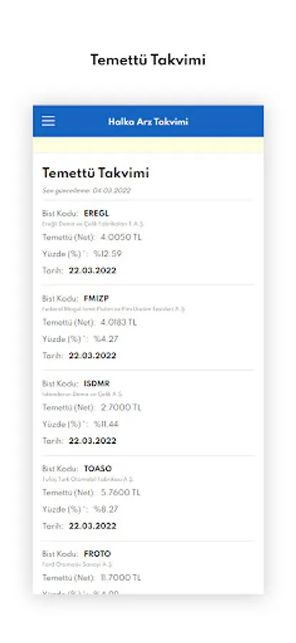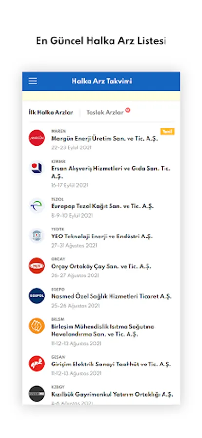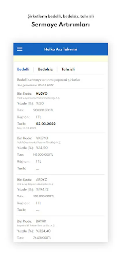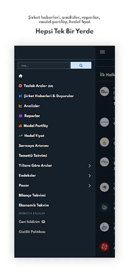 Initial public offering announcements of companies, capital increase, dividend calendar, balance sheet dates and more in this application. Let's explore now!