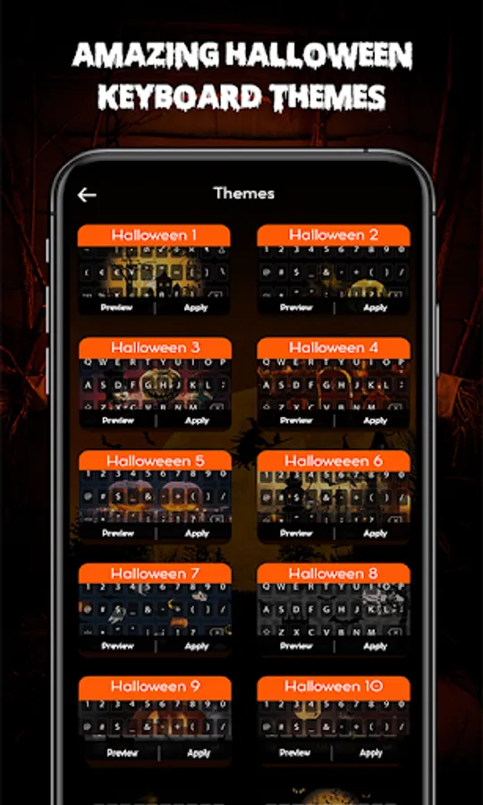 • Apply the Halloween keyboard theme to decorate your phone keyboard.
