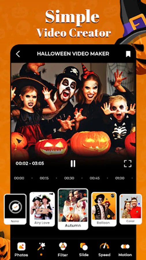You can easily create Halloween videos and edit them in Halloween videos to your own photo library. With a simple interface and easy to use & navigate features, create a wonderful Halloween day!