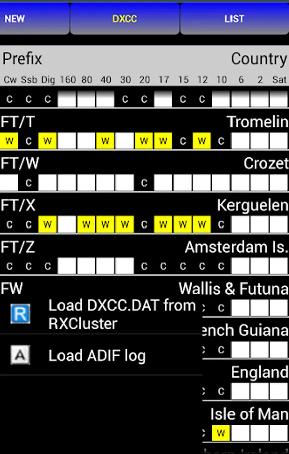 You can also load your DXCC status from the RXCLUS.DAT file, your IOTA status from RXCluster's IOTA.DAT or from a log in ADIF format.
