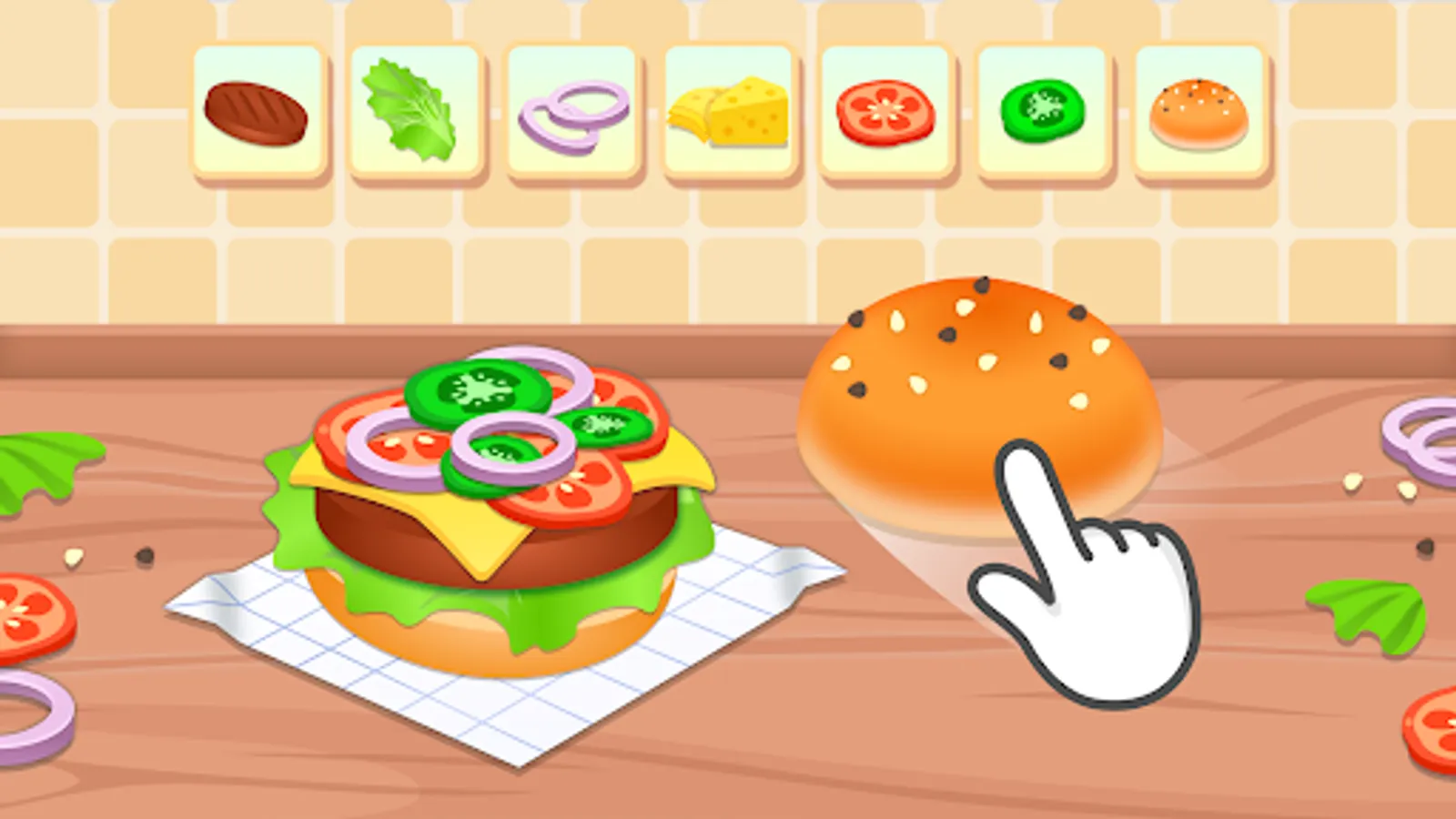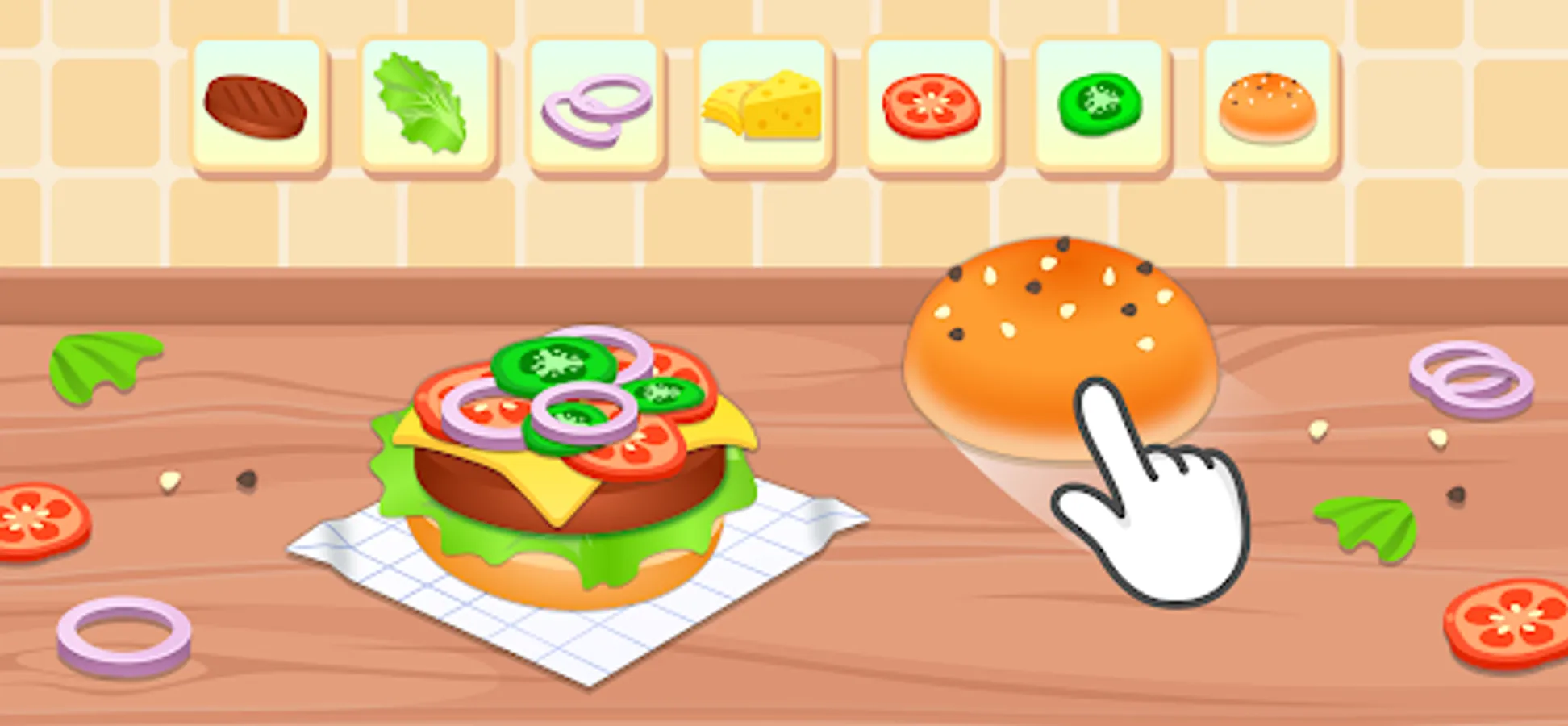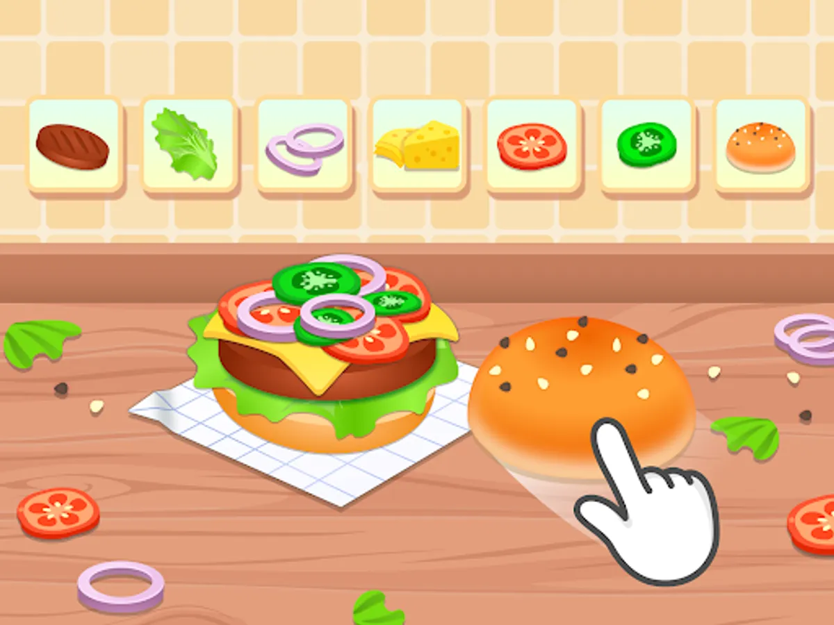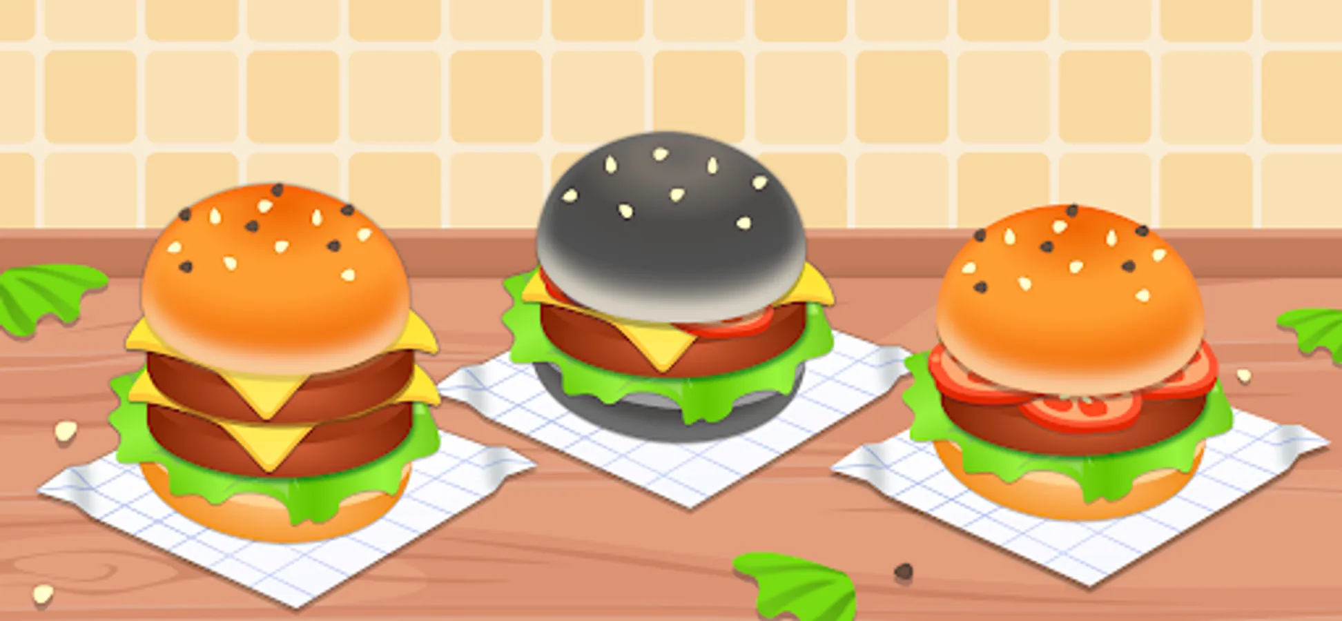 Hamburger cooking games for kids – is an amusing application in which your kids will be able to try their skills in cooking different types of fast-food. Play kitchen games for girls and boys and develop memory and fine motor skills.