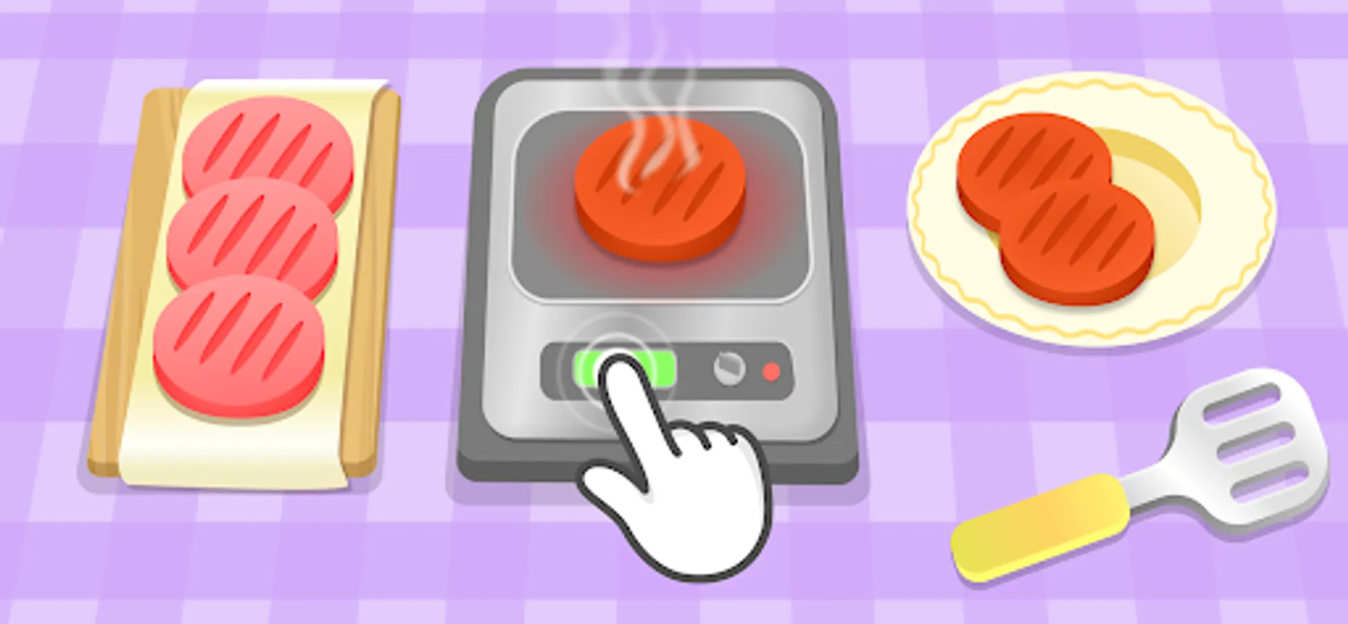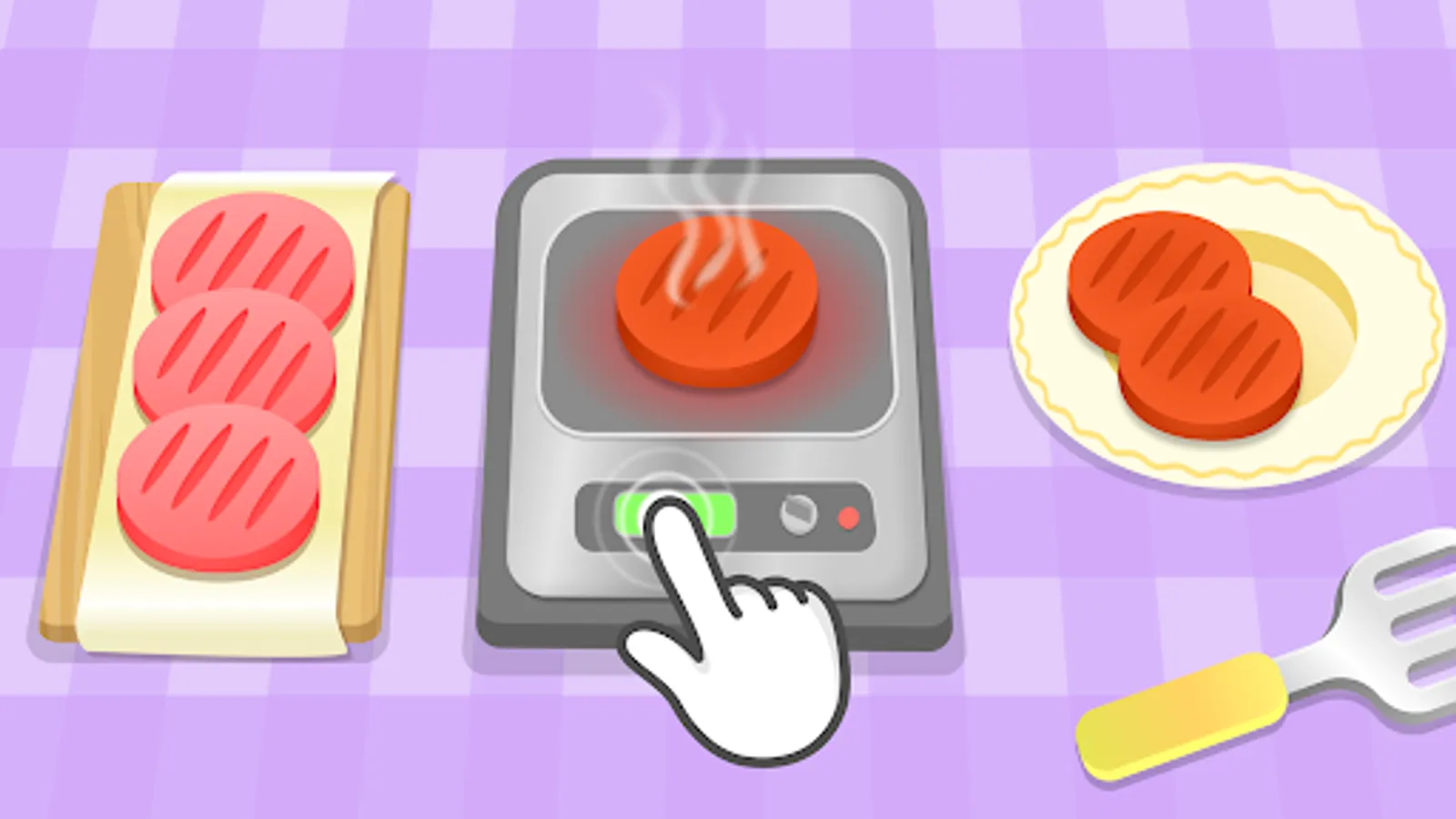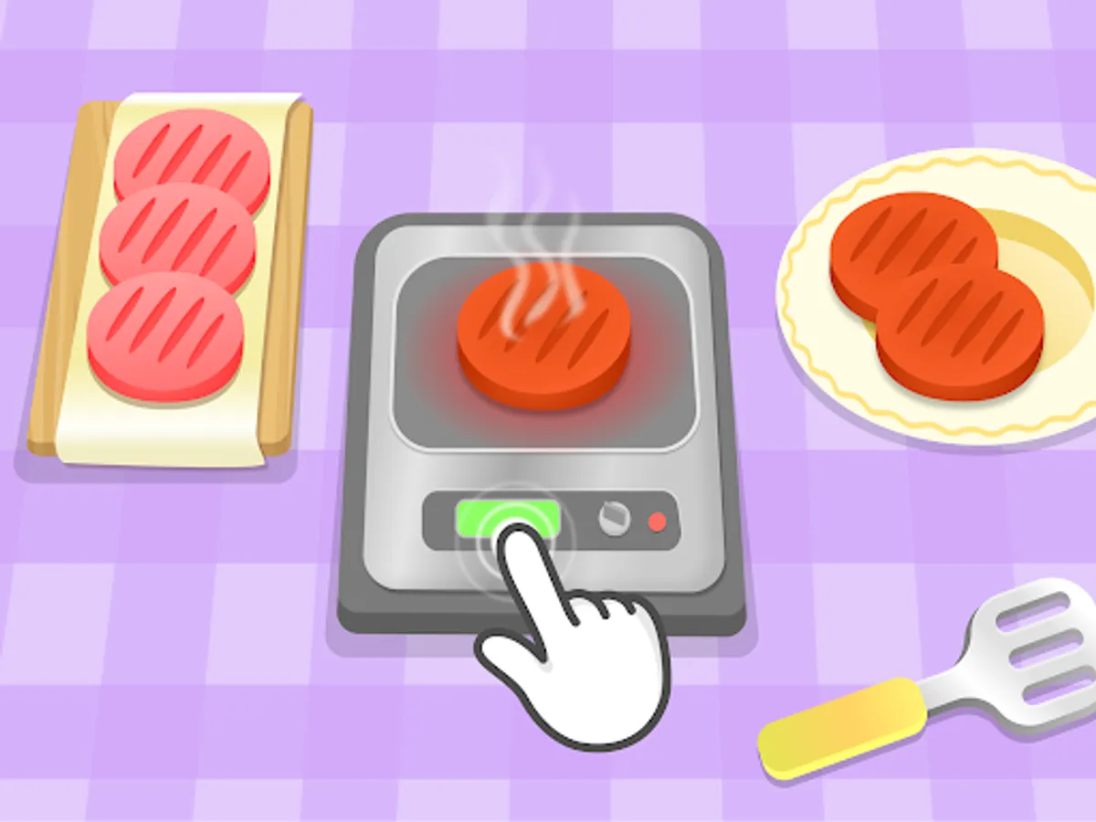 There is a need to improve toddler skills to learn cooking burgers well. In our app we have developed a level system when completing which your kid will be able both to have fun and to work on his fast-food cooking experience. Pay your attention to the presence of a timer determining time for which the kid needs to receive a certain number of visitors.