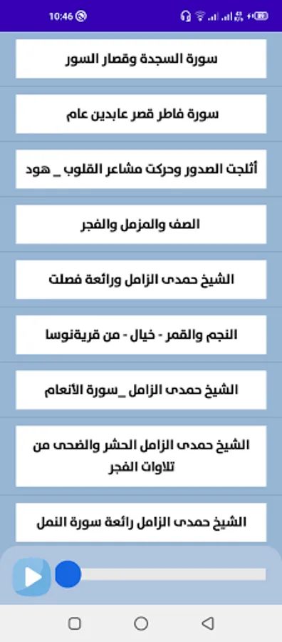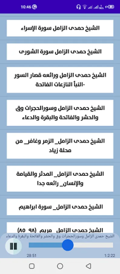 The application contains 50 recitations with the voice of Sheikh Hamdi Al-Zamil.