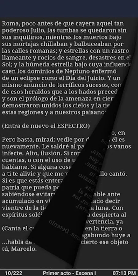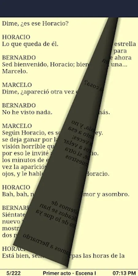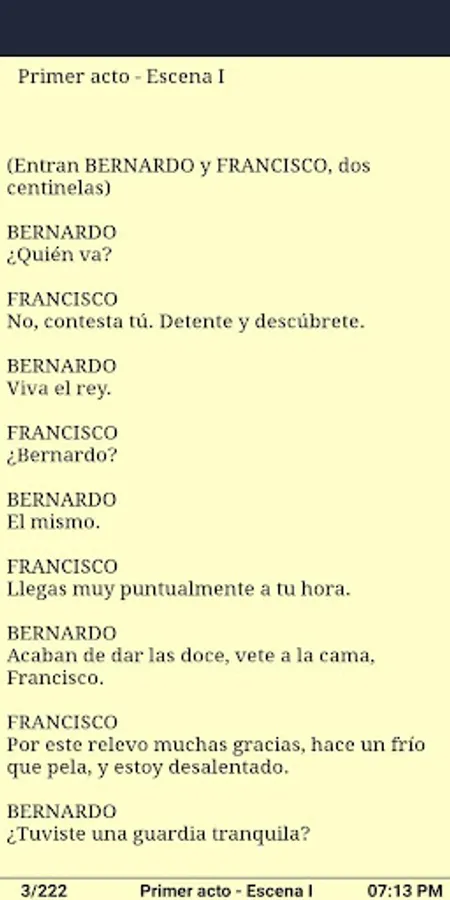 The sentinels try to convince Horace, Hamlet's best friend, that they have seen the ghost of King Hamlet, father of the prince. After hearing Horace, Prince Hamlet decides to go, at night, to the place of the apparitions to see the ghost himself.
