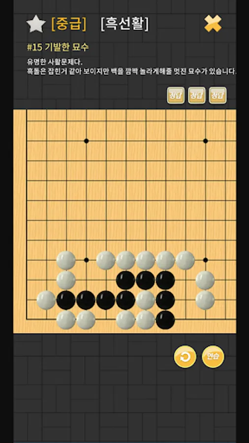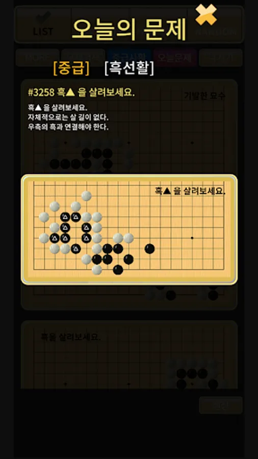Go life and death problems are divided into beginner, intermediate, and advanced levels, according to the level of the user.