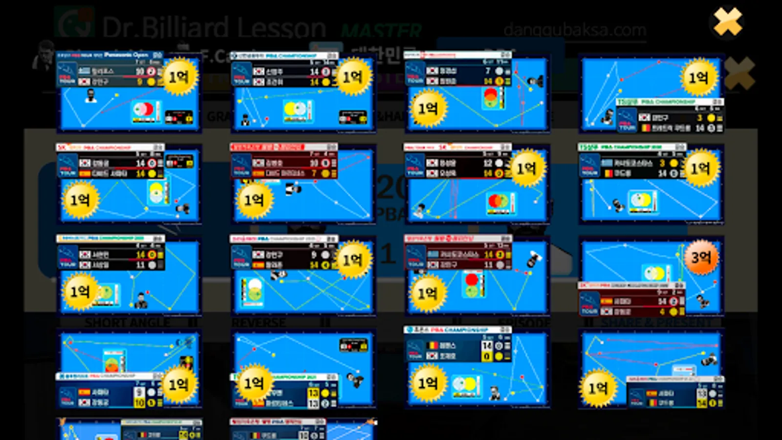 Smartphone billiard (three-cushion) tutorial app for from beginner to professional players