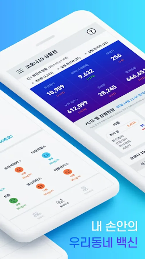 신종 코로나 바이러스 확진자 수, 동네미세 알람을 받아볼 수 있습니다.