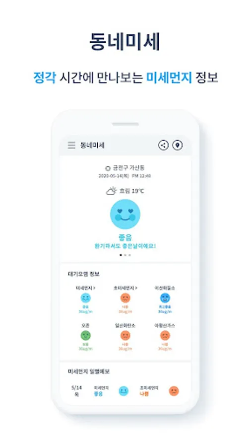 내 주변 대기오염정보, 현재날씨, 미세먼지 예보를 확인 하실 수 있습니다.