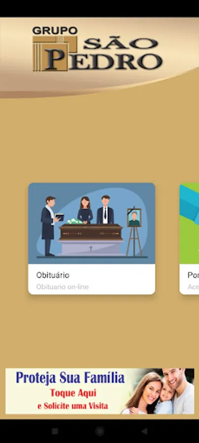Grupo São Pedro application, with online obituaries, company data, list of partners