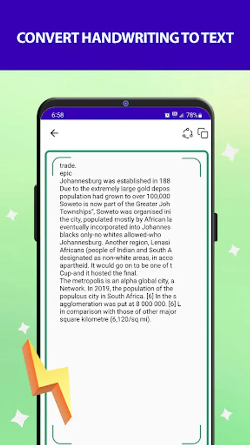 “Handwriting Recognizer” app uses the most efficient OCR (Optical character recognition) algorithm to recognize the handwriting and extracts them from the scanned photo to convert it into digital editable text. You can then use this to search for any text, make edits and add new texts to existing ones. Just upload the photo or scan the document using your camera and see the magic happen!