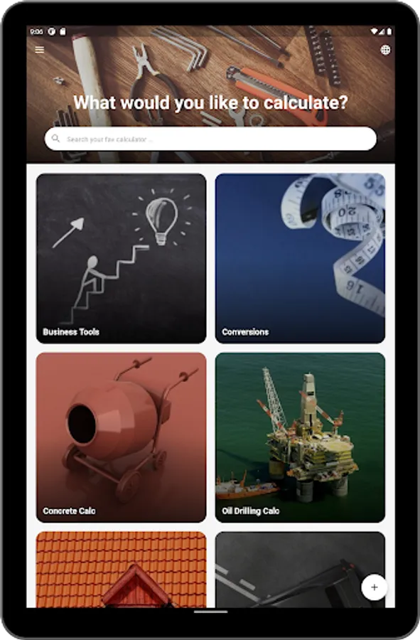 Handyman calculator is divided into different categories for your convenience.