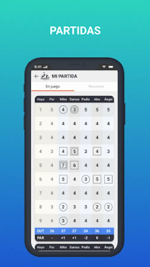 partidas.Permite visualizar los pares y trazo de los hoyos que integran el campo. Además de