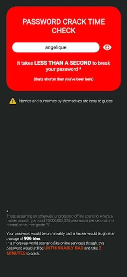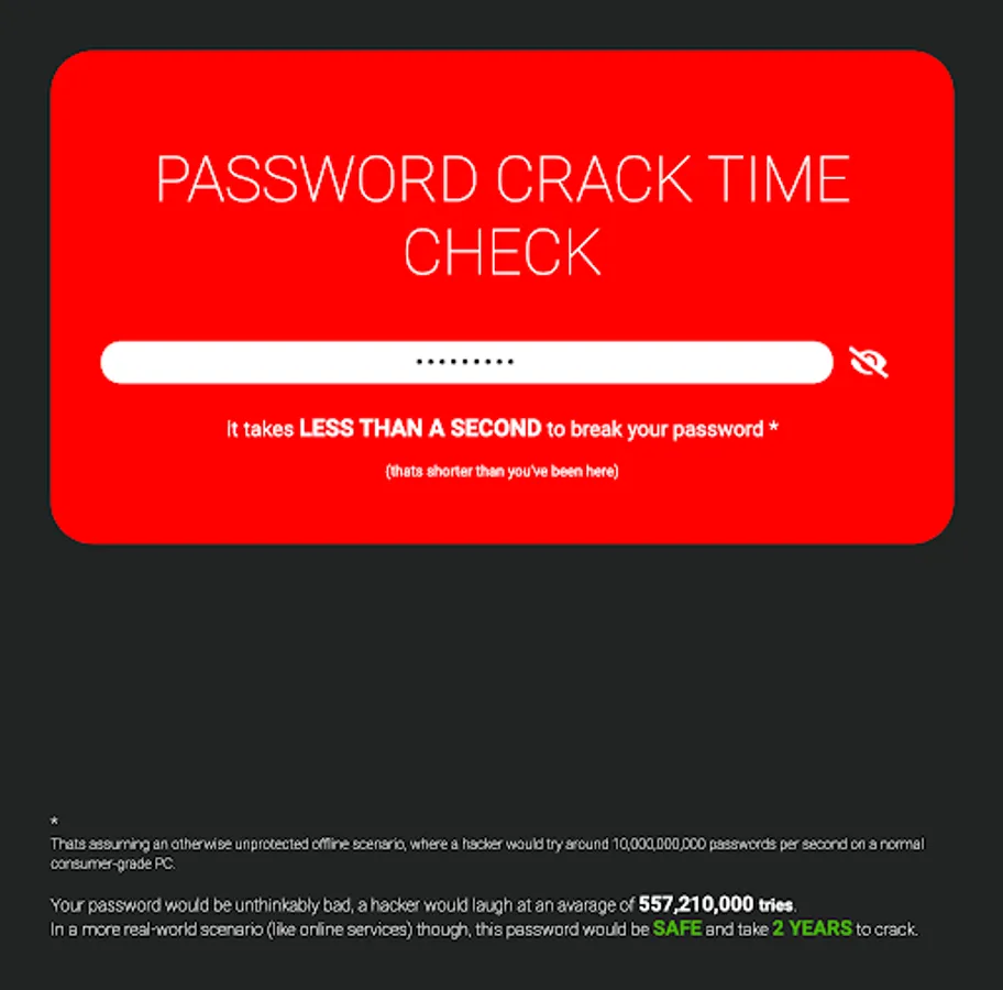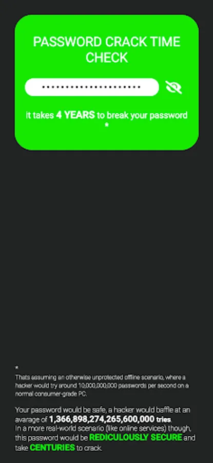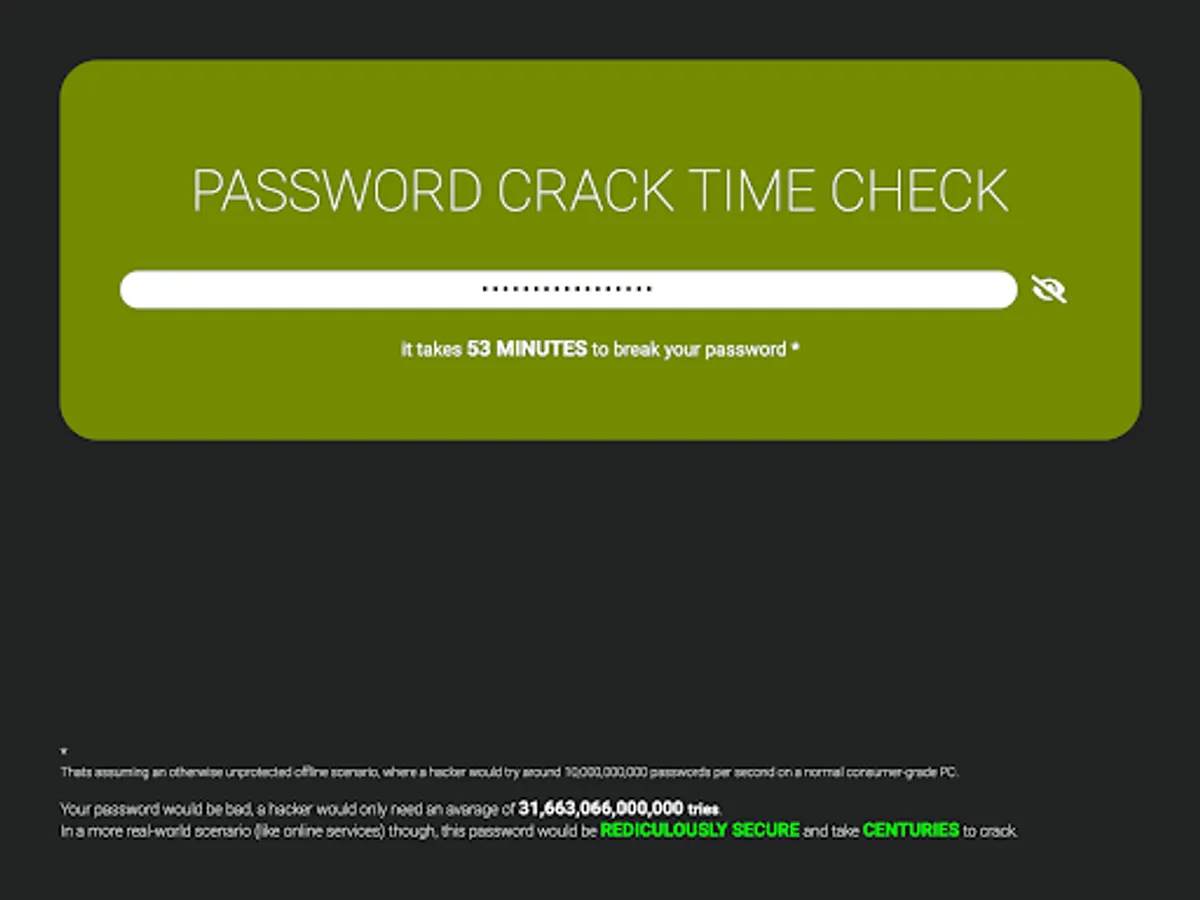So here's the thing it seems good. I just don't know how good, because every password that's long, it would say it would take centuries to crack. With shorter passwords, it would say it's not that great even though my password manager says it's good. So, I would say it needs to improve on detecting shorter passwords. And have more features.