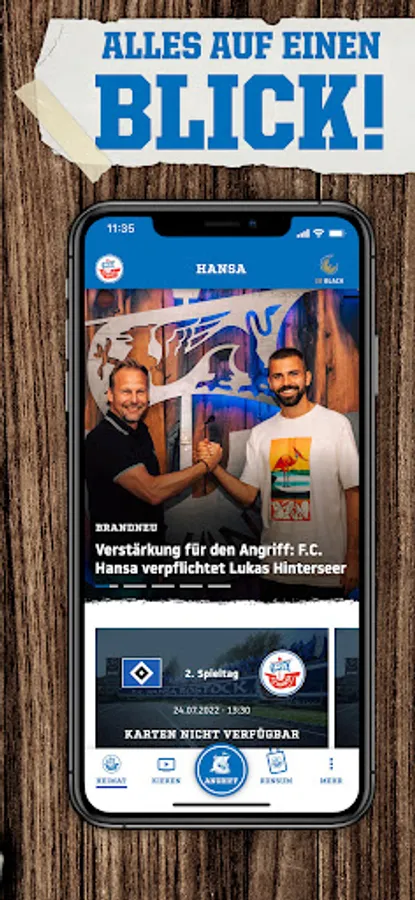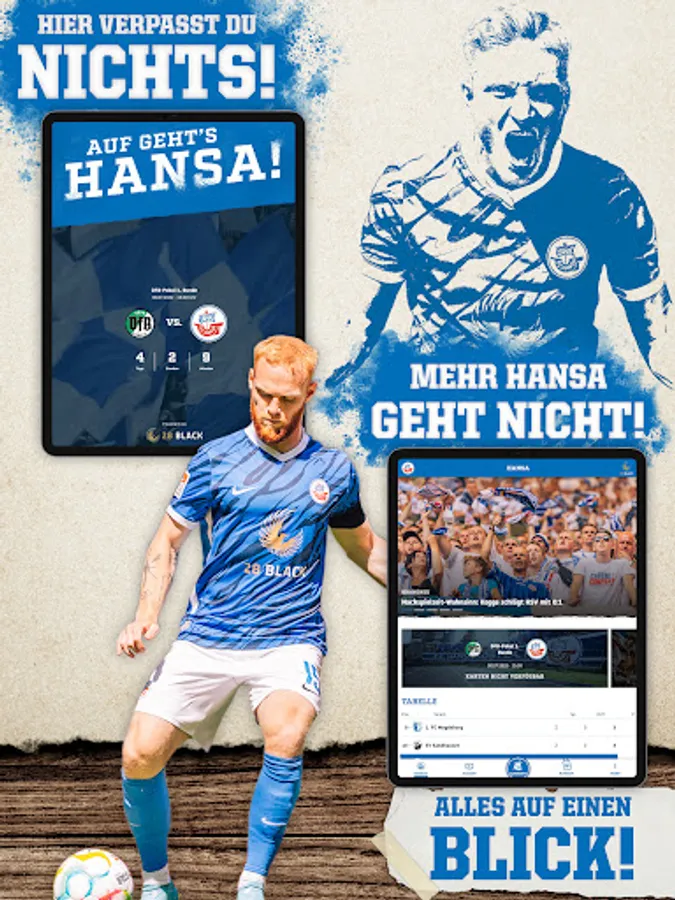 The cog is now going to sea as a mobile device! From now on you’ll find all the news about our F.C. Hansa directly on the mobile phone or tablet: In the match center our cog blows to attack, in the live ticker you won't miss a goal and the highlight videos provide you with the best game scenes. In addition, you can take part in surveys and ask the professionals holes in the stomach: You have never been so close to the team! In addition to Hansa-TV, our fan radio can also be received free of charge in the app - and you can easily book your next ticket or order the new fan articles on your mobile phone!
