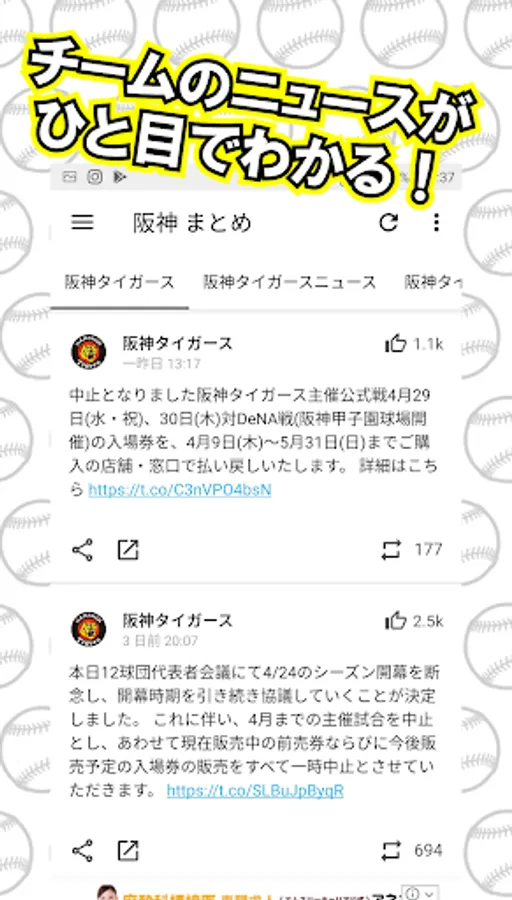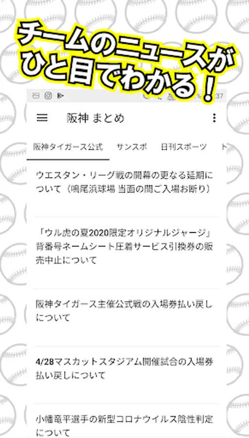 [Hanshin Tigers breaking news (unofficial)] is an application that summarizes information about the Hanshin Tigers. You can grasp all information at once with this app.