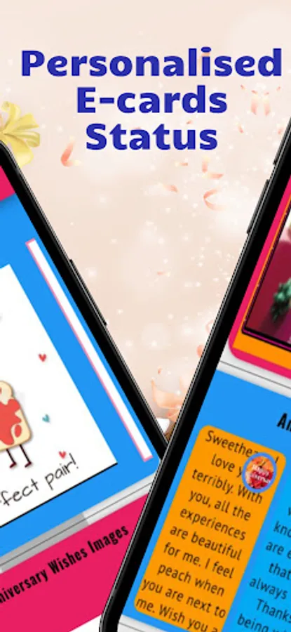 Celebrate love and commemorate those special moments with our Anniversary Wishes app. With a vast collection of heartfelt messages, inspiring quotes, captivating images, charming GIFs, engaging status updates, helpful tips and techniques, personalized e-cards, and enchanting shayari, this app is your ultimate companion for expressing your love and best wishes on anniversaries.