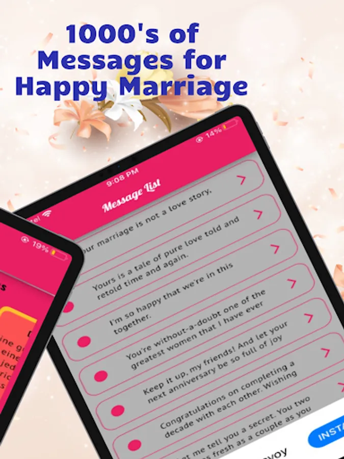 Whether you're celebrating your own anniversary or sending warm wishes to friends, family, or loved ones, our app offers a delightful array of anniversary-centric content. Explore our extensive collection of anniversary messages crafted with love, perfect for conveying your deepest emotions. From sweet and romantic messages to funny and light-hearted ones, you'll find the ideal words to touch hearts and bring smiles.