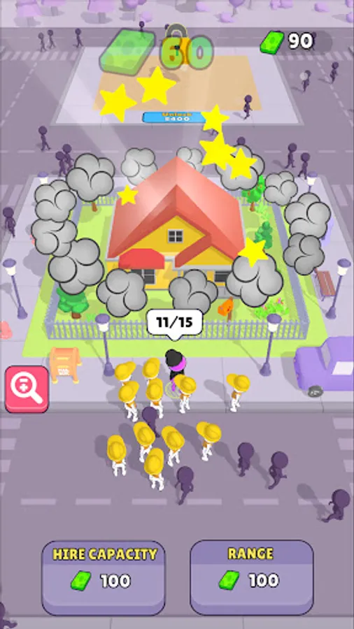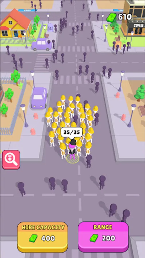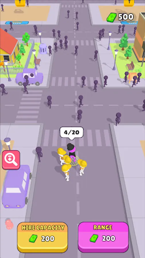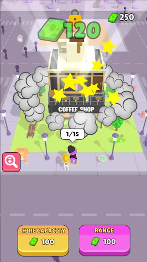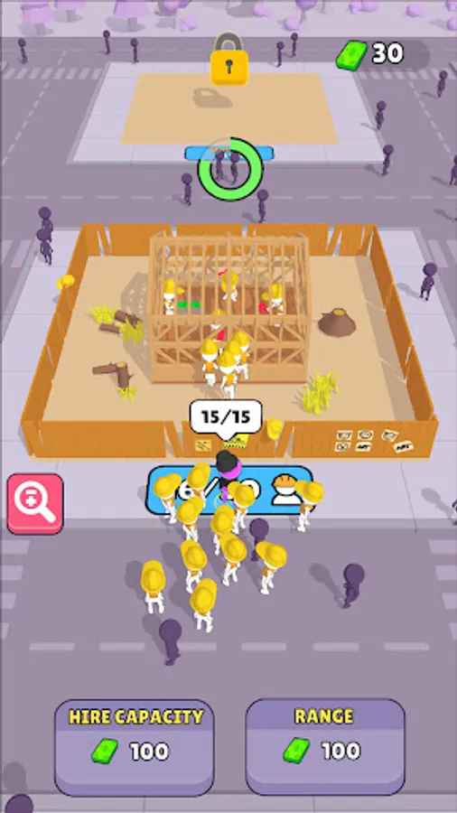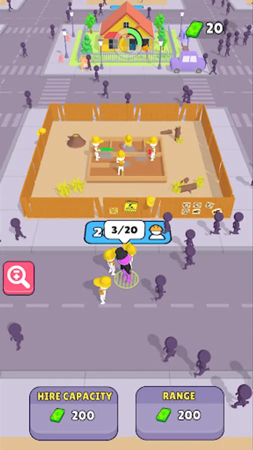 You need to rebuild the entire city to save the urban people from misery. The way to do it is to collect the workers on the street and take them to the construction areas. Don't forget to increase the width of your collection area and your collection capacity with the money you earn. This will make your tasks much easier.