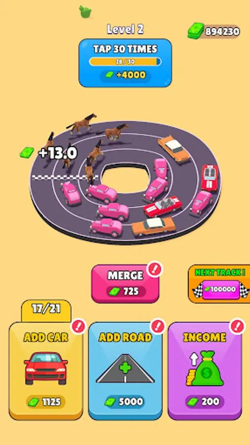In Race Evolution, it's time to put the pedal to the metal and race your way to the top. This addictive circular clicker game puts you in the driver's seat as you earn money and upgrade your cars by finishing tours around the circuit. With each race, you'll have the chance to add new cars to your collection and merge them to create even faster vehicles.