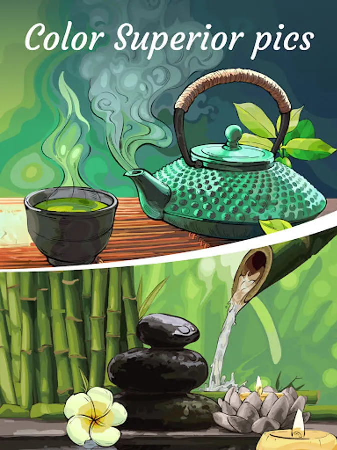 Zen Color is the world's first coloring game inspired by Zen and is dedicated to bringing you the best relaxing and calming experience. Dissipate worries, relieve stress and relax your mind. Enjoy a relaxing, peaceful, and serene time in the Zen coloring world.