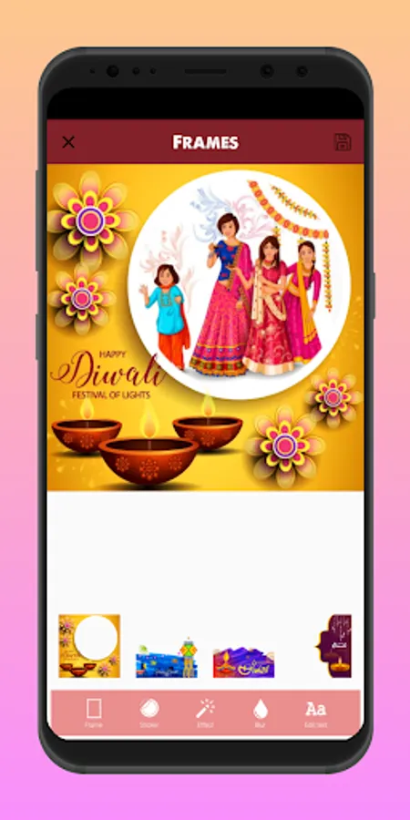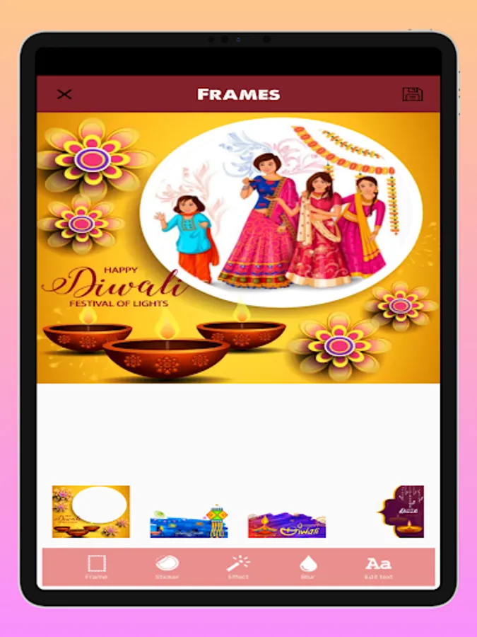 Celebrate the festival of lights with our Diwali photo frames app! Add a touch of festivity to your photos and create beautiful memories with our collection of Diwali-themed frames. Whether you want to capture the joy of family gatherings, the sparkle of fireworks, or the vibrant colors of Diwali decorations, our app has the perfect frames to enhance your photos.
