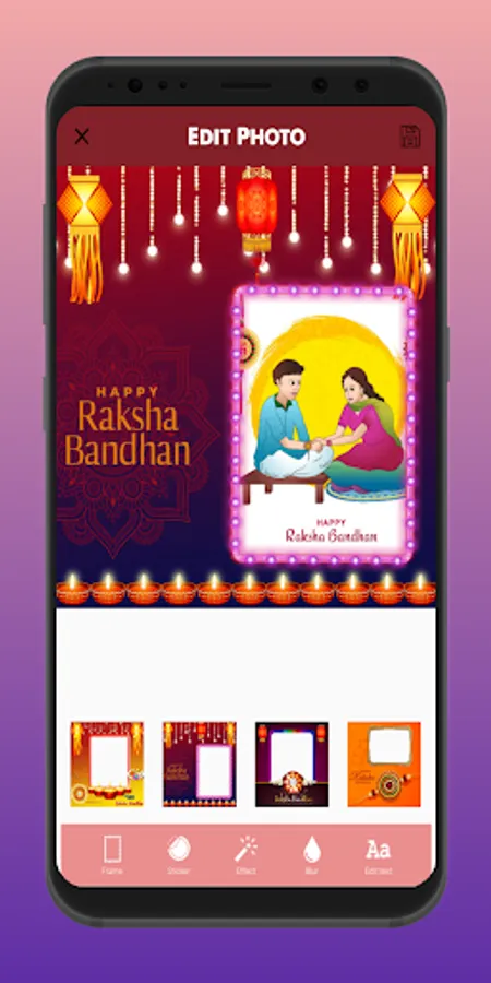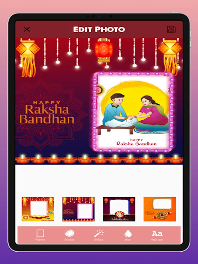 Raksha Bandhan Photo Frame app lets you to create more attractive and stunning HD quality Raksha Bandhan photo frames which also contains amazing Raksha Bandhan wishes 2023 and Raksha Bandhan photos greetings to send to your beloved ones for the Raksha Bandhan celebrations.