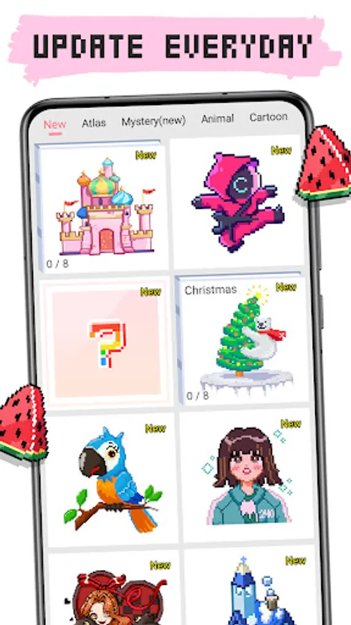 🖌Regular updates with new pictures and topics of pixle art. Get new number coloring book for adults on a daily basis.