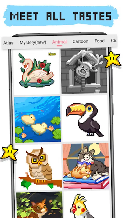 Pixel Art Coloring games are great pixel art maker that combines numbers, pixels and pictures. No stress of picking up color, no need to be gaming experts , just color by number, diy your artworks and relax with pixel art coloring games!